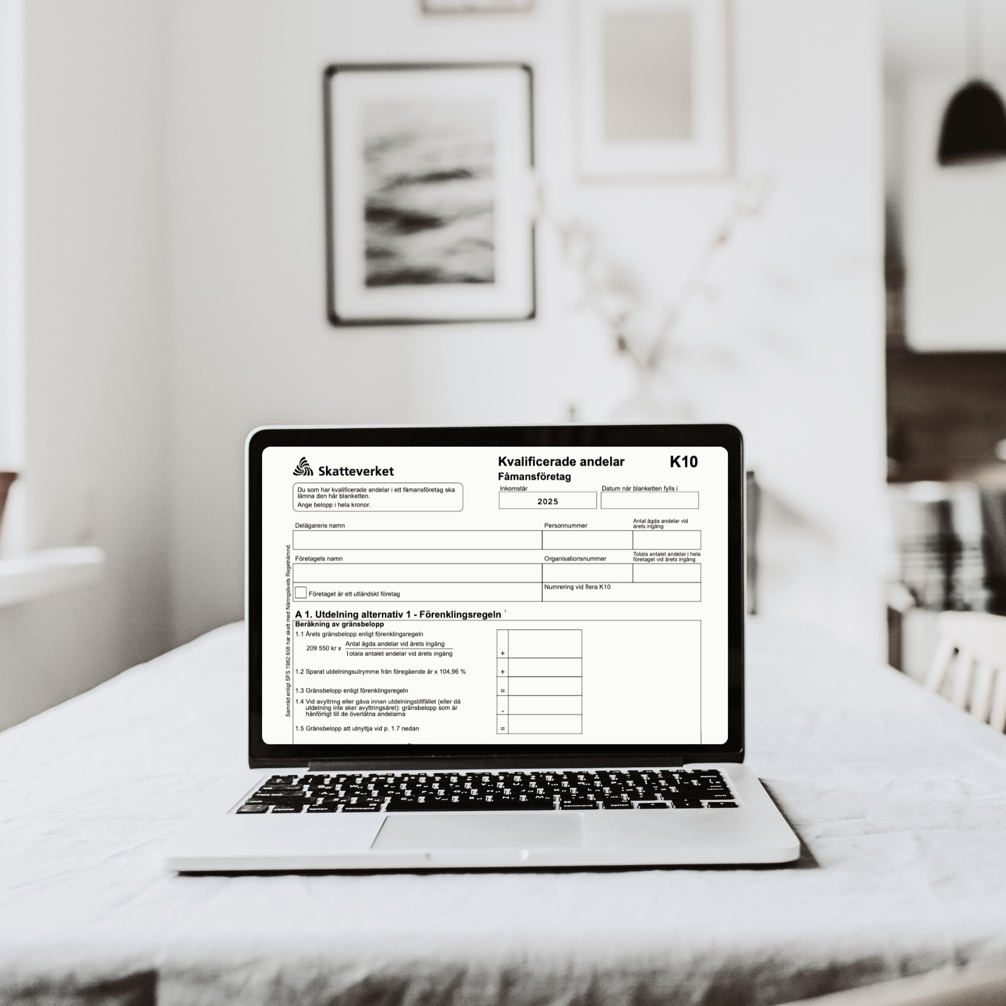 Skatteverket behöver veta om pengarna du tar ut ur bolaget ska räknas som kapitalinkomst (20 % skatt) eller som lön (upp till 55 % skatt). K10 är blanketten där den beräkningen görs och där du varje år får ett gränsbelopp för låg beskattning som rullar vidare om du inte använder det.